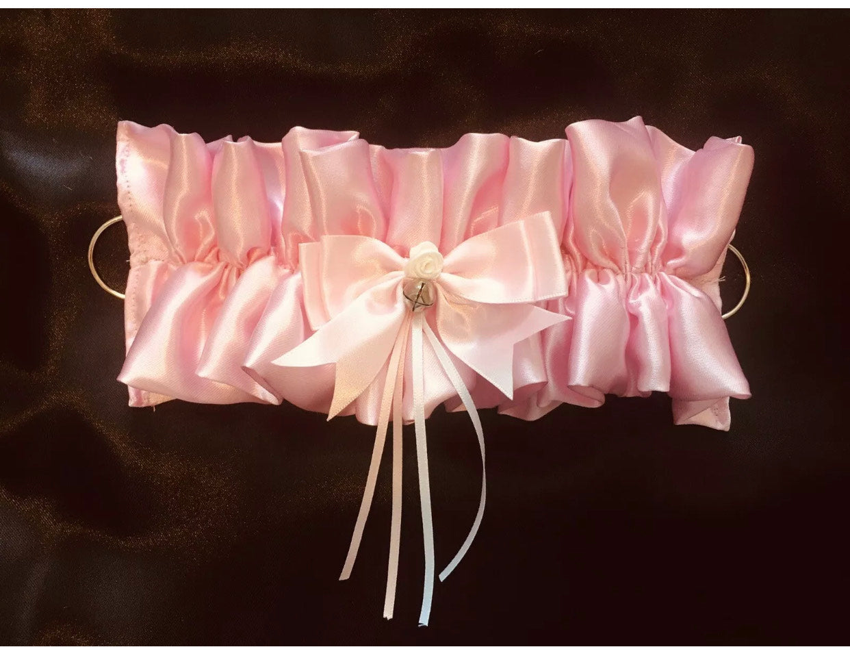 Pair of frilly satin lockable cuffs. Avalable with or without joining chain.